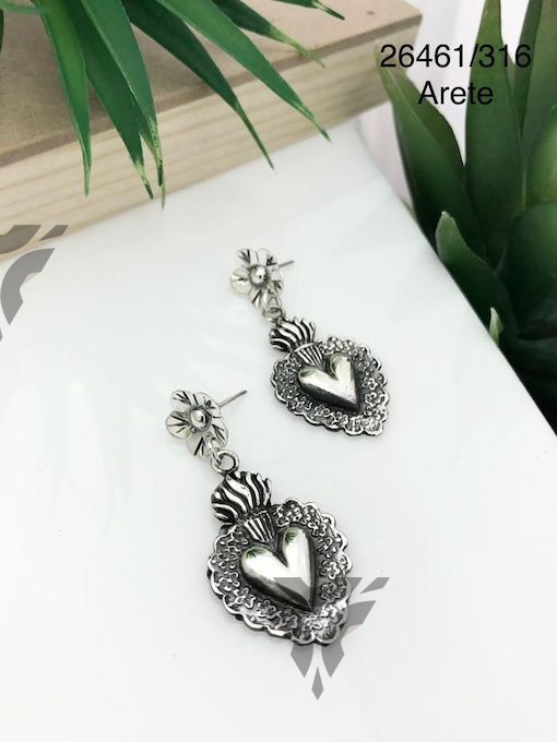 Arete corazon con flor
