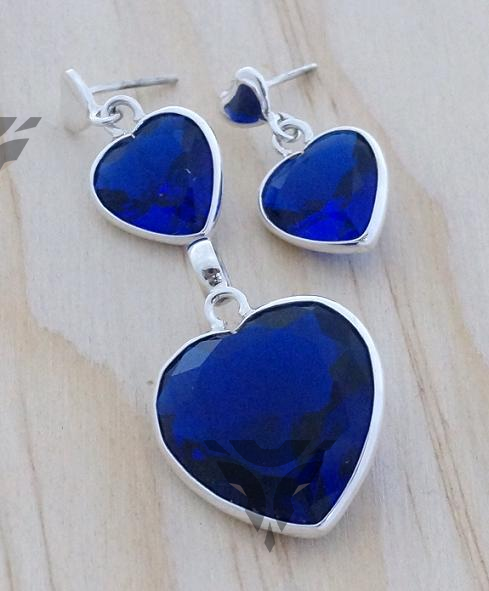 Arete y dije corazon azul rey