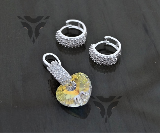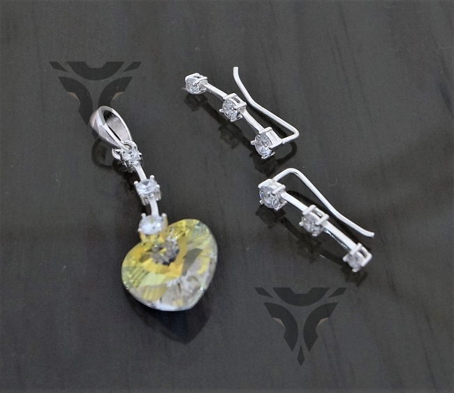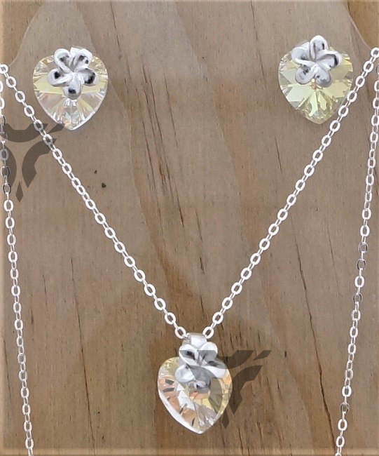 Arete y dije corazon swarovsky con floresita
