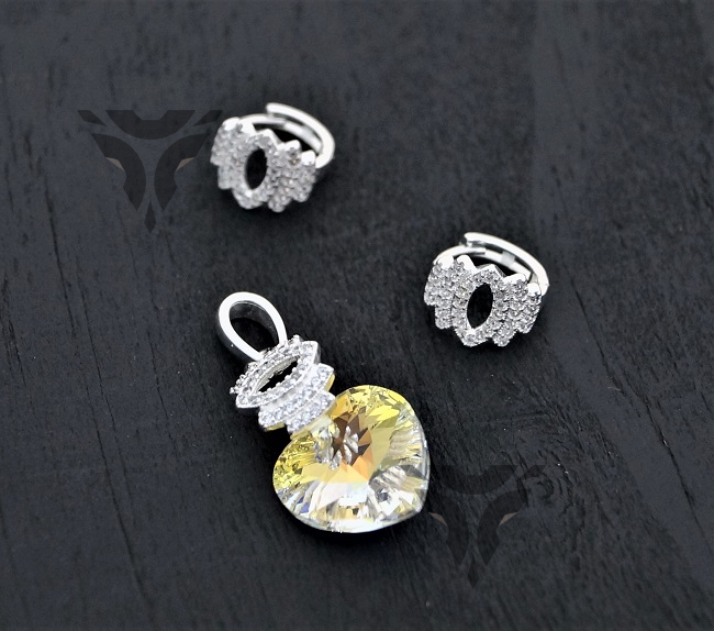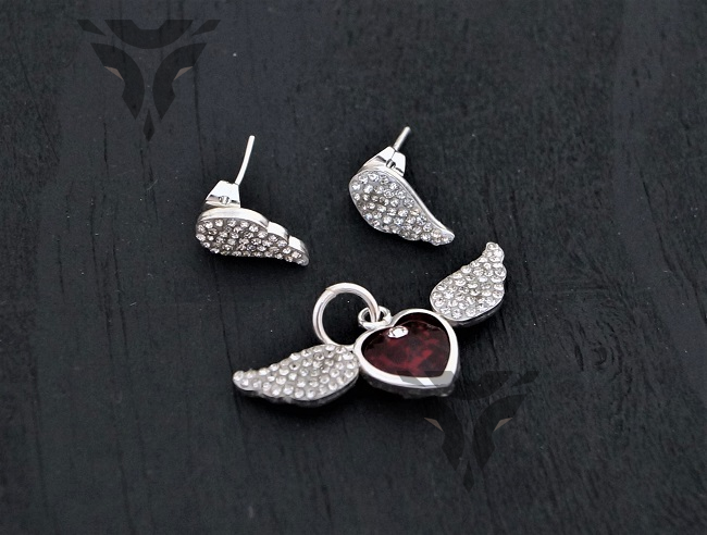 Arete y dije corazon con alas de swarovsky