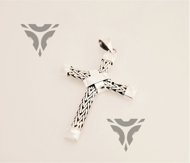Dije cruz tejida cuadrada