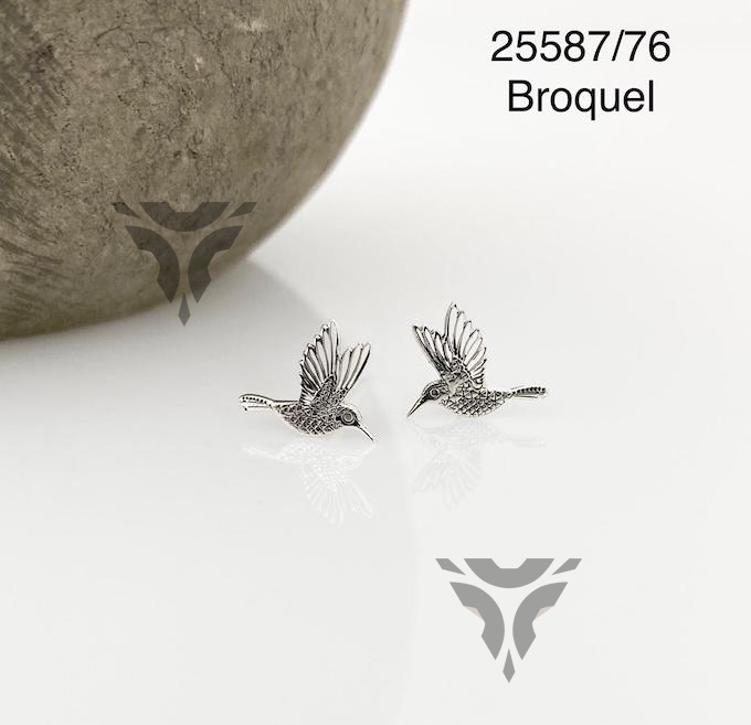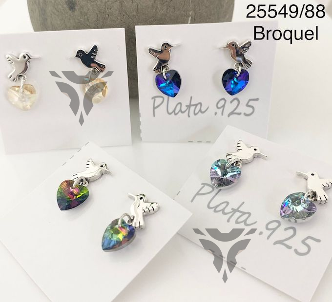 Broquel colibri cartoneado con corazon swarovsky