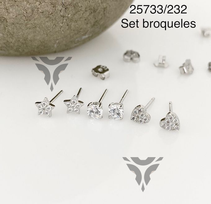 Broqueles corazon, estrella y solitario