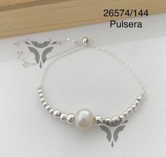 Pulsera ajustable de bolitas con perla al centro