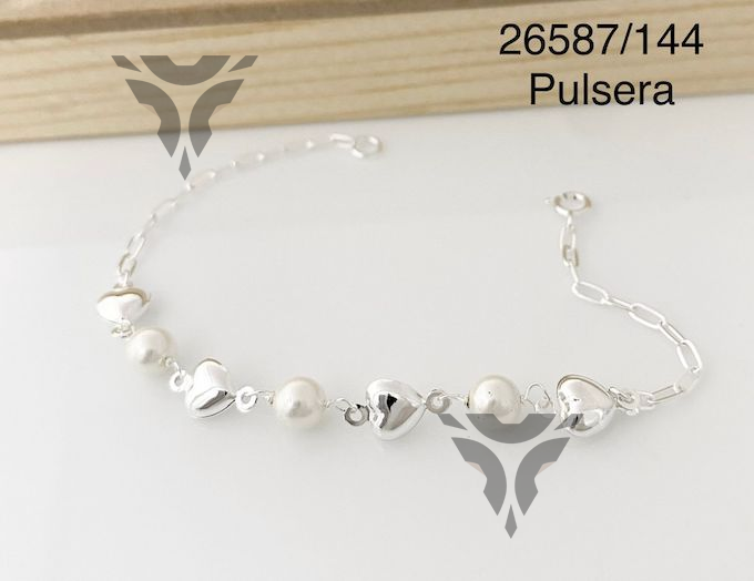 Pulsera perlas, corazon y cadena