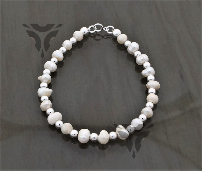 Pulsera perlas huevito con bola de plata