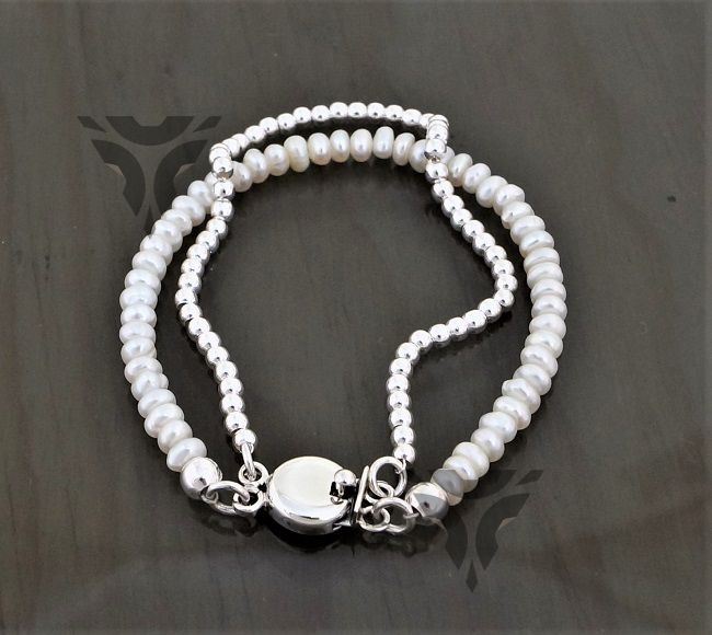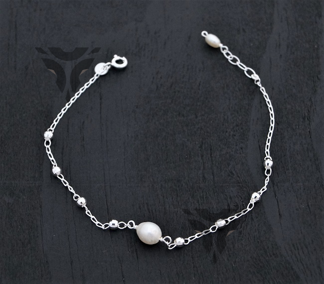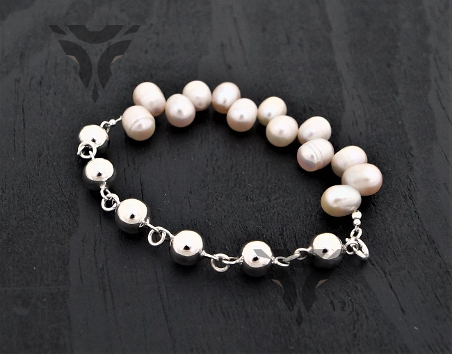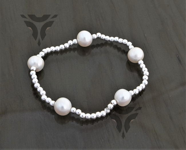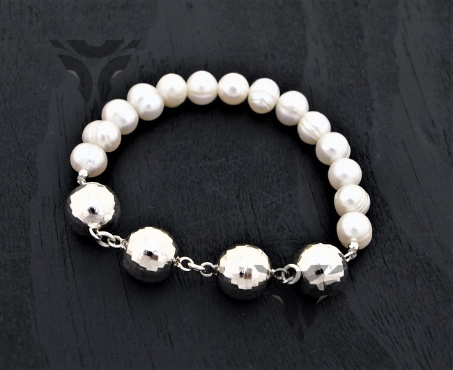 Pulsera bolitas de plata con perlas