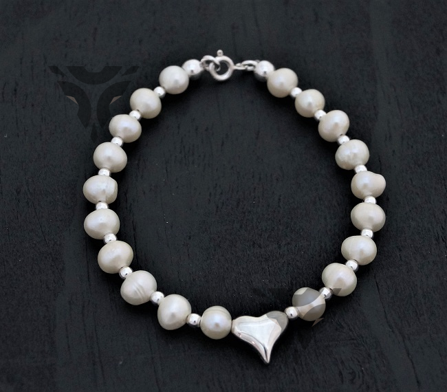 Pulsera perlas con bolitas y corazon gordito