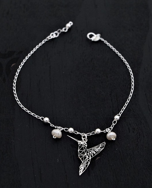 Pulsera colibri origami con perlas colguijes