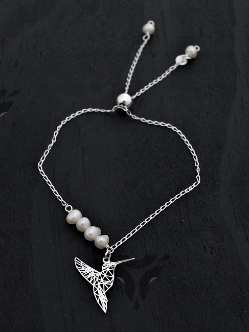 Pulsera ajustable colibri origami con perlas