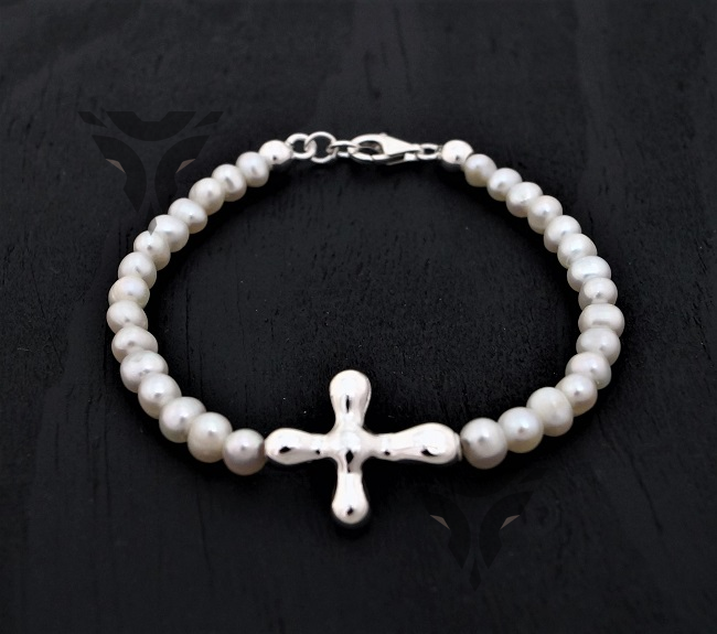 Pulsera de perlas con cruz gotas