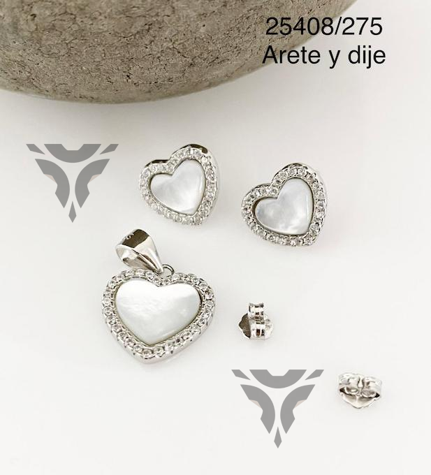 Arete y dije corazon madre perla