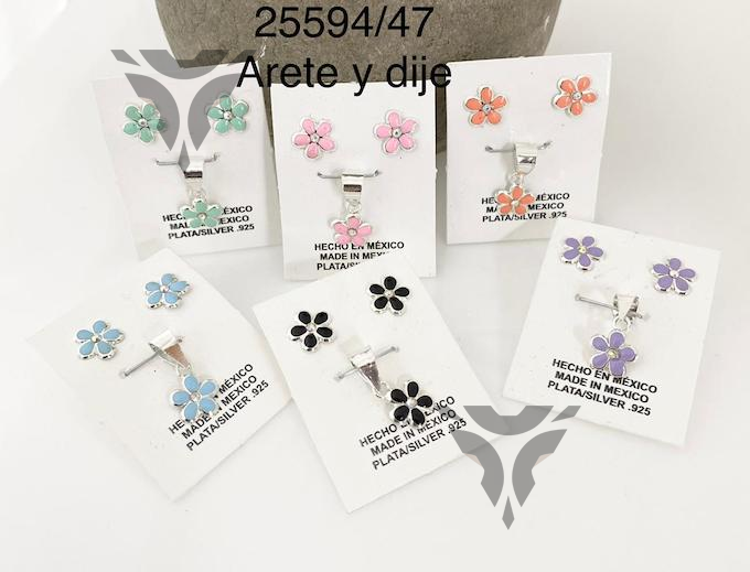 Arete y dije floresita esmalte