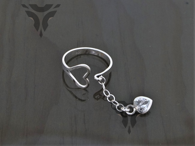 Anillo corazon con corazon zirconia colgando