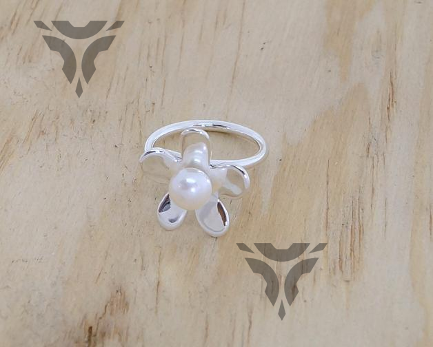 Anillo flor con perla