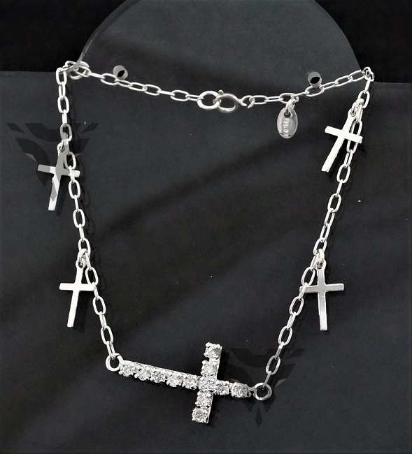 Pulsera cruz de zirconias con cruces lisas