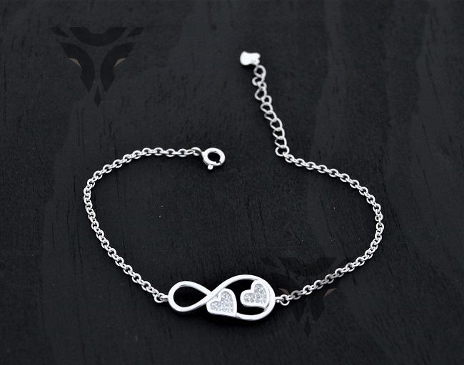 Pulsera infinito con dos corazones de zirconia