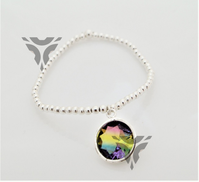 Pulsera de bolitas con zirconia redonda rainbow