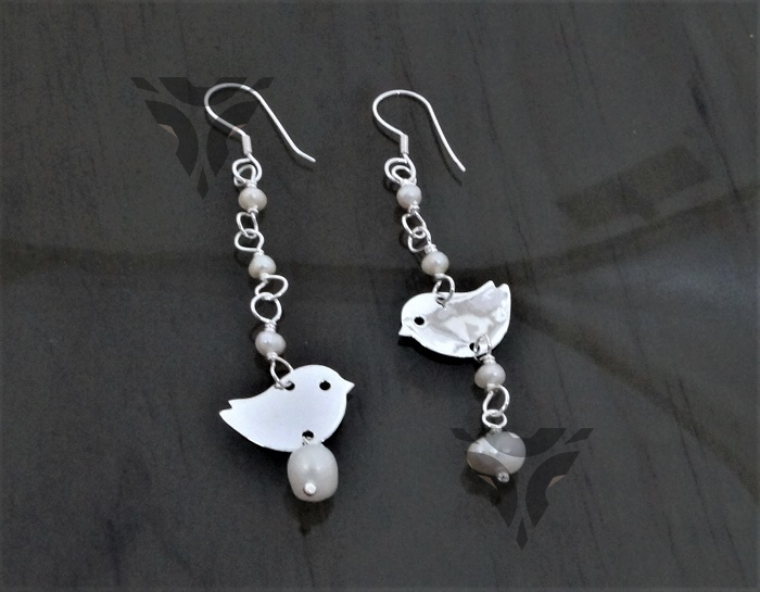 Arete perlas con pajarito