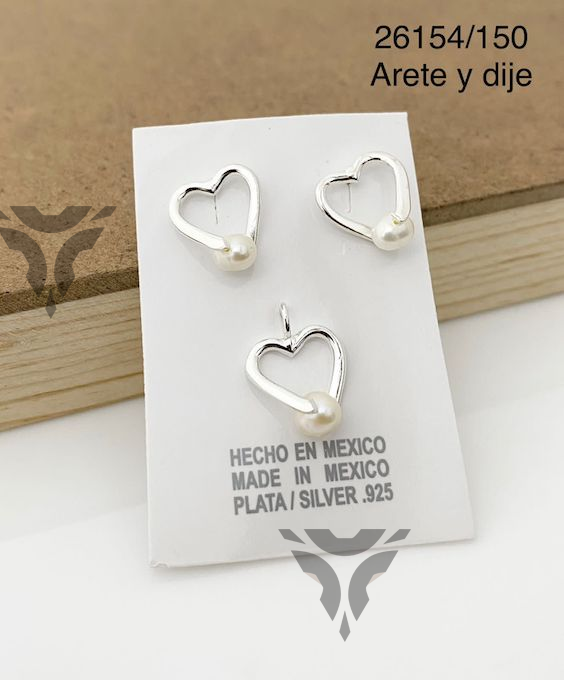 Arete y dije corazon perla