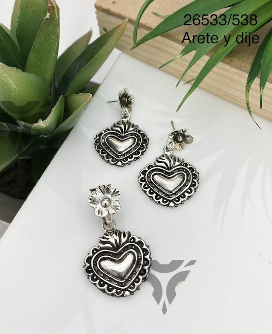 Arete y dije corazon puntos frida