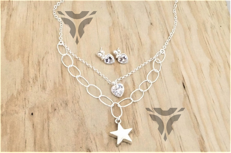 Gargantlla y arete cadenas con corazon