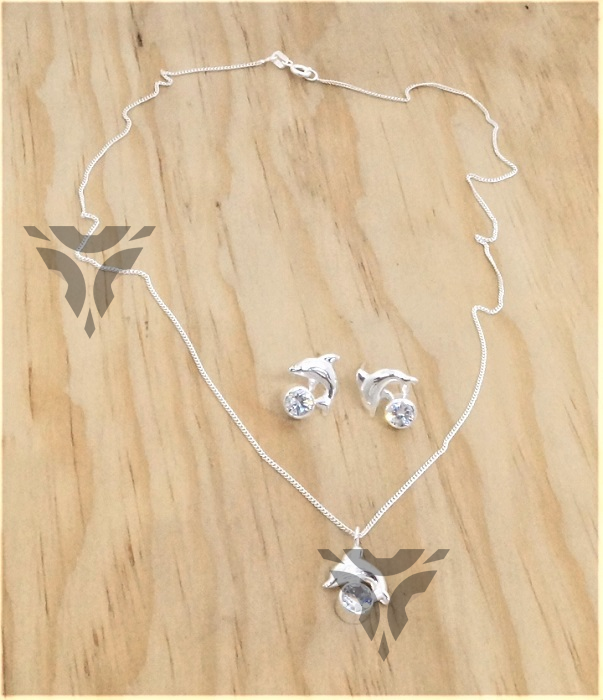Gargantilla y arete delfin con zirconia