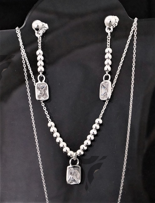 Gargantilla y arete bolitas con zirconia rectangulo