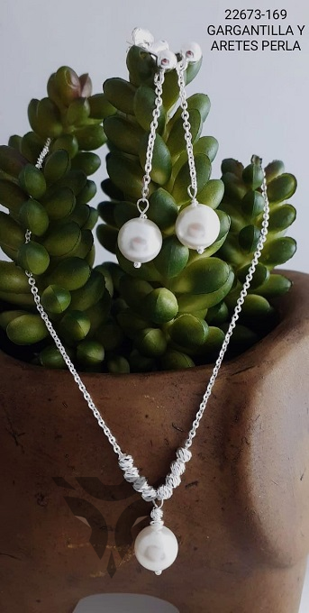 Gargantilla y arete con perla sencilla