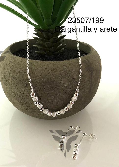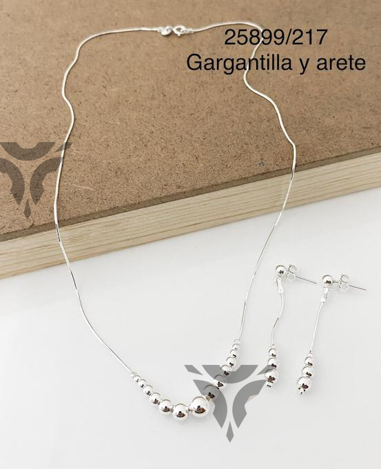 Gargantilla y arete bolitas en disminucion