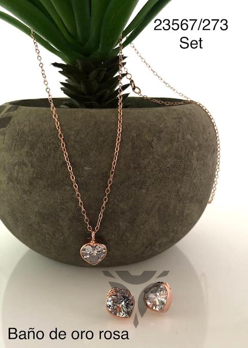 Gargantilla y arete corazon de zirconia y bolitas