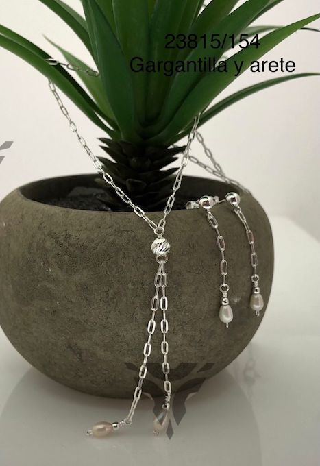 Gargantilla y arete corbatin perla
