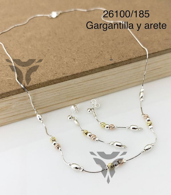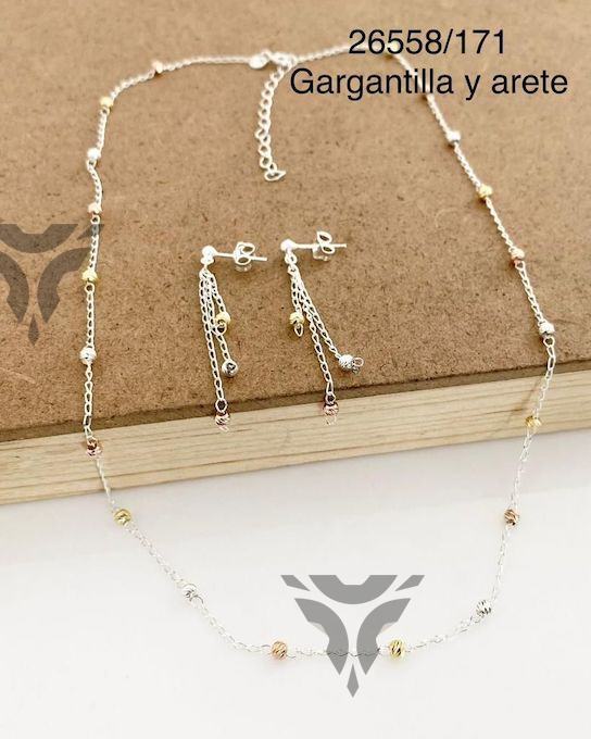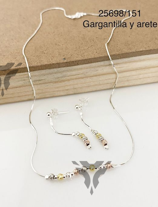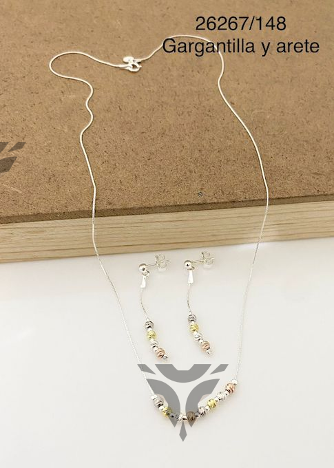 Gargantilla y arete bolitas tres tonos