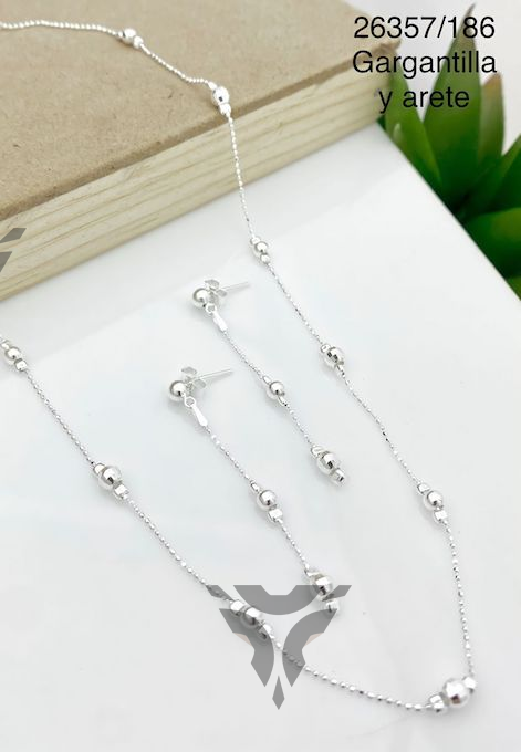 Gargantilla y arete bolas facetadas
