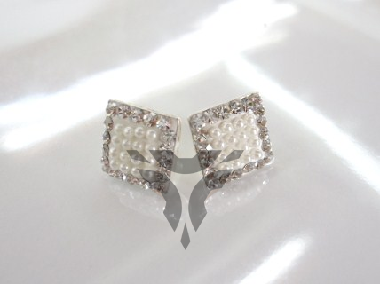 Broquel perla blanca y swarovsky cuadrado