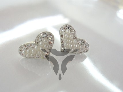 Broquel perla blanca y swarovsky corazon
