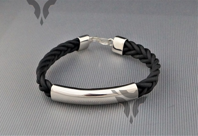 Pulsera caucho trenzado con placa