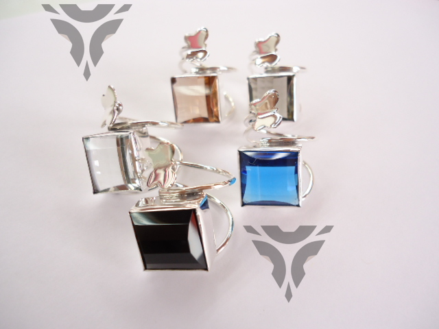 Anillo cuadro facetado y mariposa