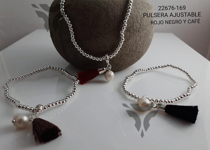 Pulsera bolitas perla y racimo hilo