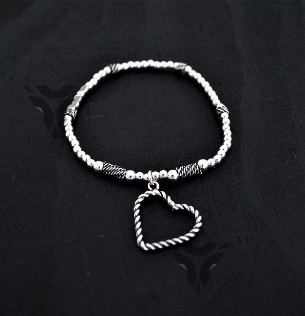 Pulsera de bolitas con corazon alas