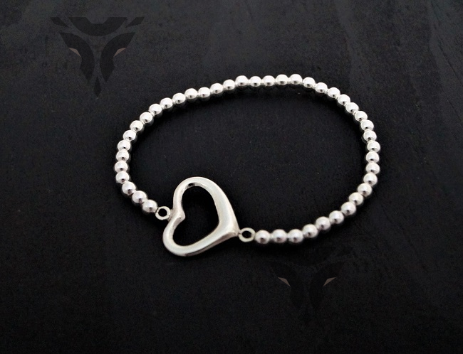Pulsera de bolas con corazon tiffany grande