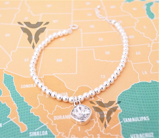Pulsera de bolas con cuadro de swarovsky