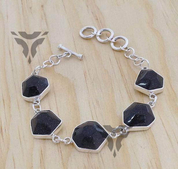 Pulsera venturina azul facetada