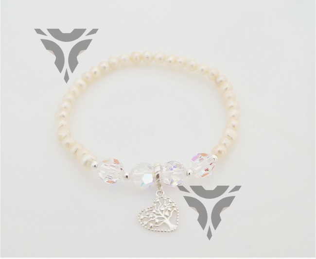 Pulsera de perlas con cristal swarovsky y corazon arbol