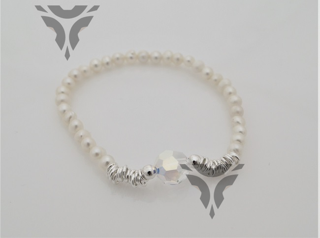 Pulsera de perlas con mil aros y bola de swarovsky